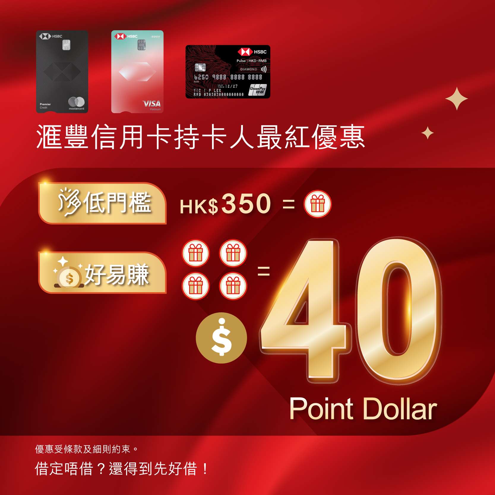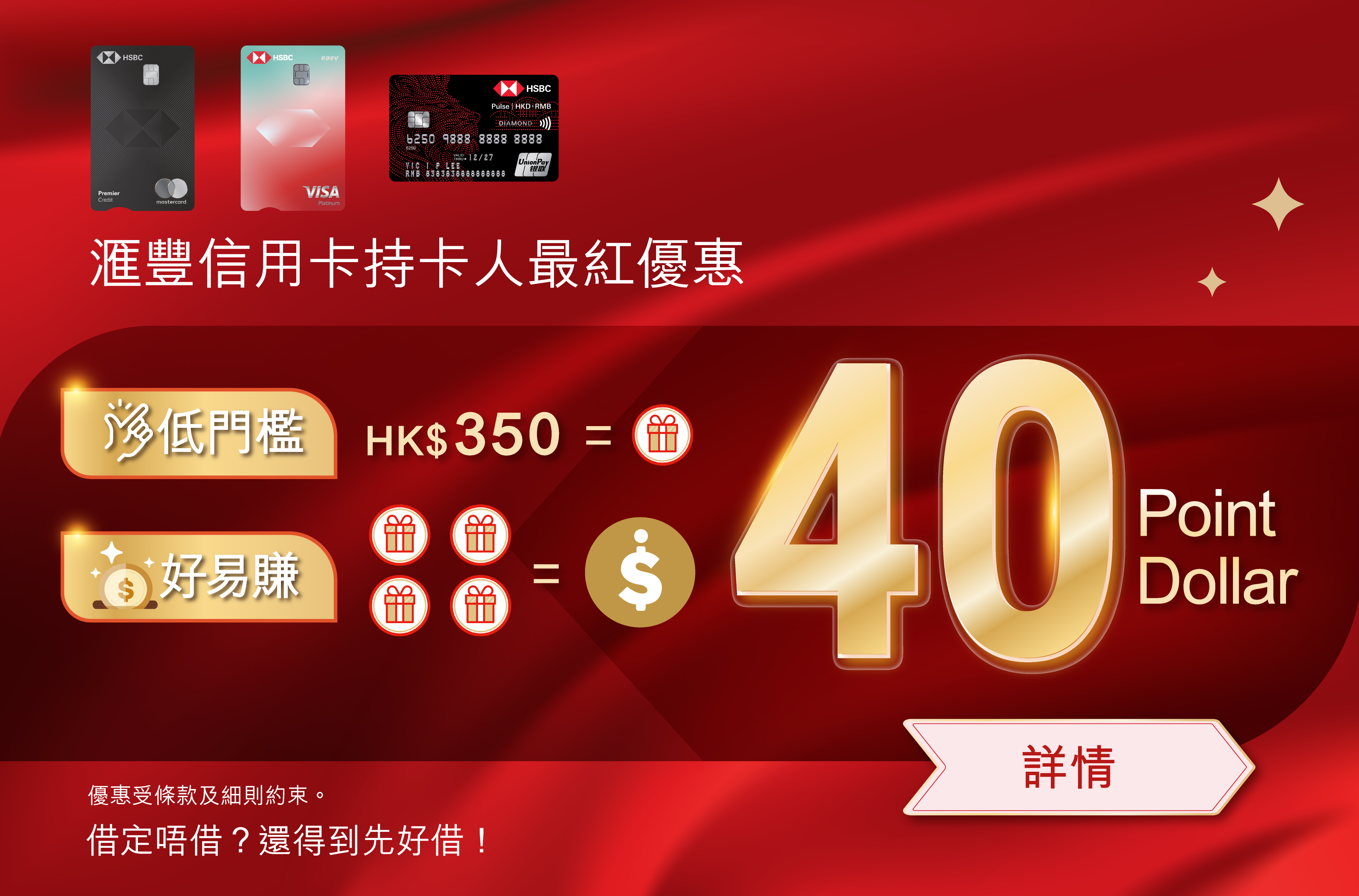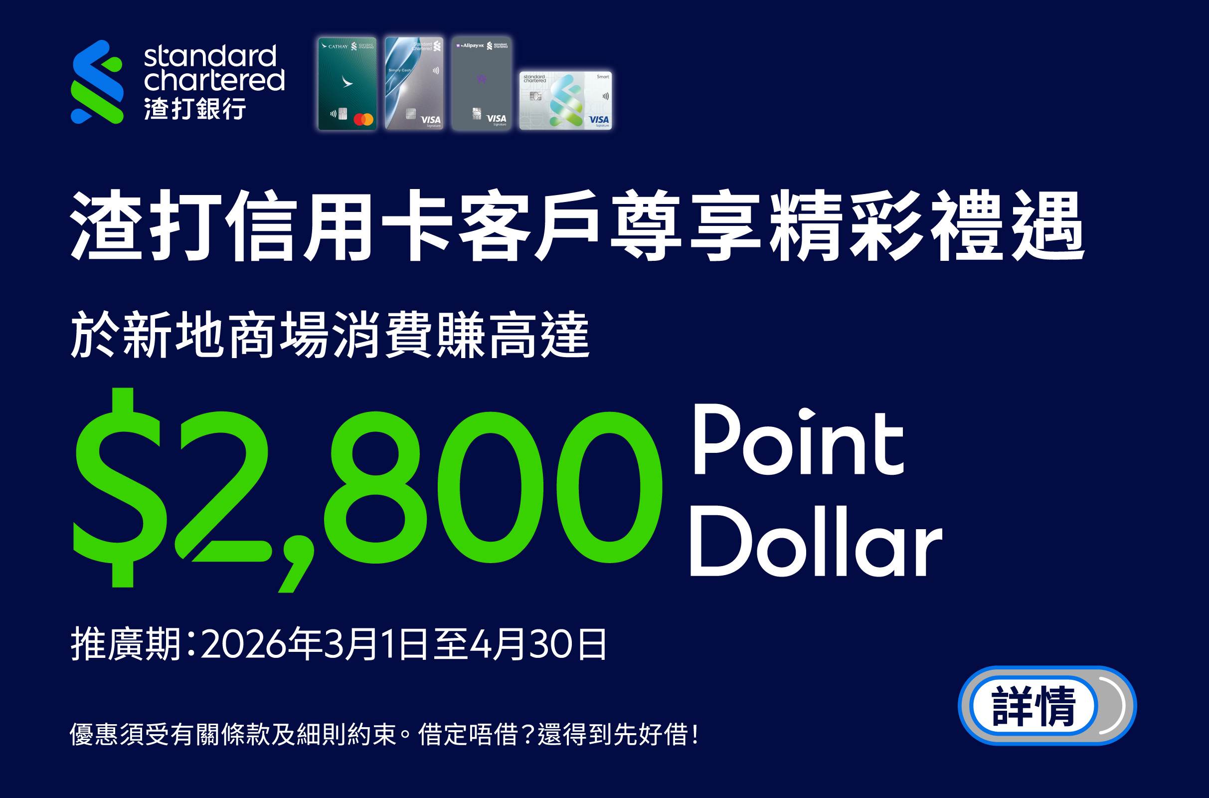 活動接受購買指定節慶食品券(只限月餅券(包括雪糕月餅券)、賀年糕點券、粽券及臘腸券)之簽賬。惟以下交易並不是合資格簽賬: 所有透過電子錢包所作的交易(包括但不限於AlipayHK、PayMe及WeChat Pay)、使用此指定節慶食品券、Apple商戶、旅行社、過境巴士、地產代理公司、僱傭中心、老人院、貨幣兌換店、任何業務性質的商戶提供的服務(包括但不限於:健身及美容中心服務<購買產品除外>、理髮/髮型護理、醫務所及牙醫診所<購買產品除外>、洗車及汽車美容或相關服務、汽車產品及服務、銀行服務、保險計劃的保費、學費/會籍費/其他月費、購買或增值八達通、任何增值服務或繳費)、小賣車、展覽場地、臨時展銷攤位 / Pop Up Store / 市集(有關商戶名單將不時作出更新,恕不另行通知,詳情可聯絡參與商場)、新翠花園4樓商場商戶、寫字樓客戶、酒店、郵購、傳真訂購、電郵訂購、電話訂購、網上購物 <網上購買電影戲票除外>、任何台費、電話卡費用、以舊換新貨品的交易或換領貨品、購買泊車卡的交易。此外,亦恕不接受購買及/或使用Point Dollar及以下卡券類產品(包括現金券、新地商場禮品卡、新地商場贈券、其他商戶禮品卡、電子優惠券、會員卡、積分卡、折扣卡、增值卡、鞋券、湯券、飲品券、食品券、餅卡及婚嫁禮券(包括但不限於西餅卡、唐餅卡、婚嫁禮卡及婚嫁禮券)、購買金粒、金條及供金會、以現金繳付之發票,以及參與商場決定之其他類別。